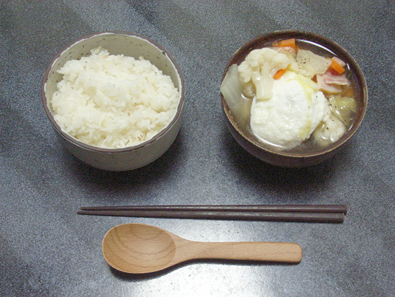 ベーコン白菜カリフラワー人参卵ごまスープ
