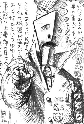 それで分かったんですが、粗野と知性が両立した人格を絵で表現するって、なんかえらく困難ですよ。背が高いってのは、見上げる構図で表現できるかなーと思ったですけど。(なかじま)